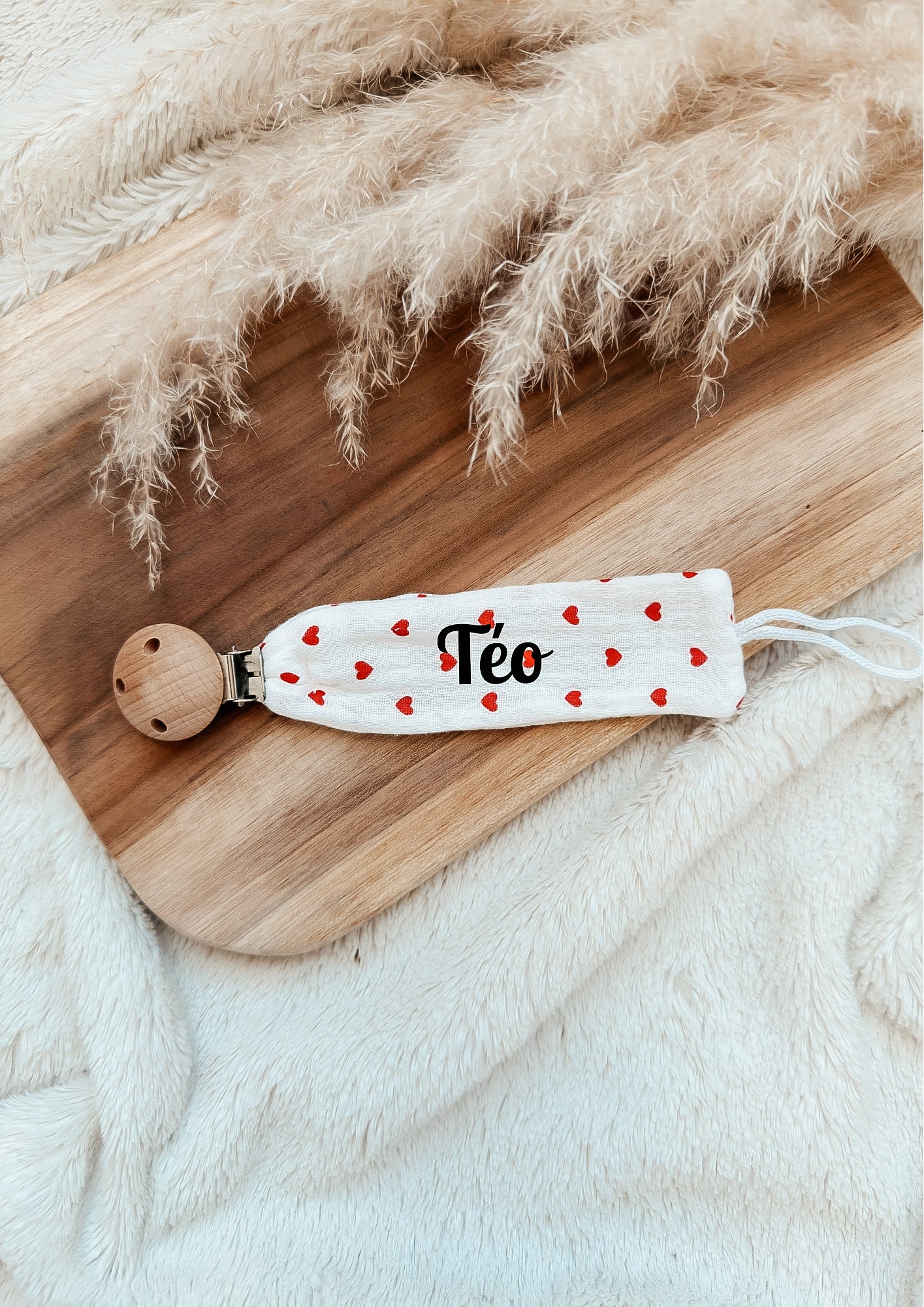 📩 Tu veux assortir ton attache-tétine à un doudou ou un lange motif cœur ? Écris-moi à contact@eclatsdepapier.com ou viens m’en parler sur Instagram (@eclatsdepapier) 🌿✨